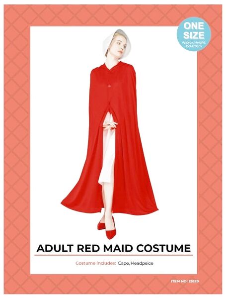 Featuring a long red cloak and white hat, this set makes it easy to dress up as one of the the Handmaids from the popular TV show & book 'A Handmaid's Tale'.