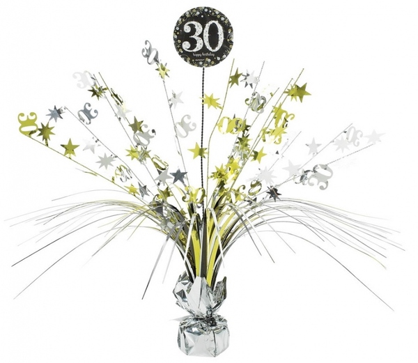 This centrepiece is perfect for any 30th birthday celebration! Measures approx. 46cm in height and 7cm in diameter at the base. Circular cutout on top measures approx. 8cm in diameter.