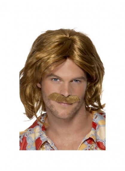 70's style super trouper brown wig & moustache, designed to fit most adults.