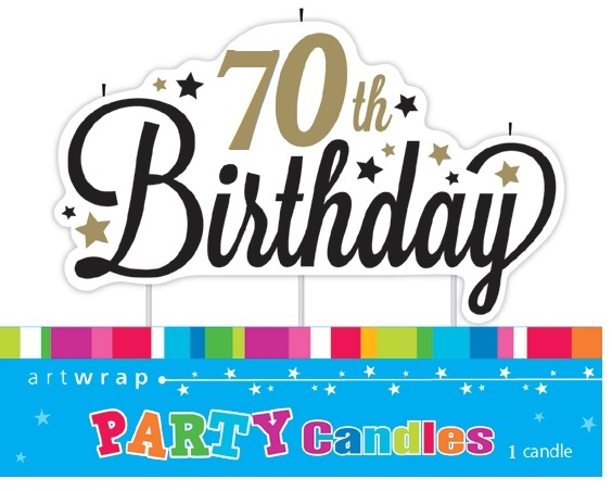 Black & gold 70th birthday party candle, perfect for any 70th birthday cake! Wax part of candle measures approx. 9cm x 4.5cm.