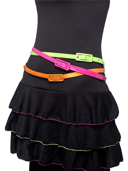 The perfect additon to any 80's costume. Pack includes a pink, orange and green neon coloured belt. All other accessories sold separately. One size fits most with 5 adjustable holes. Belts are about 100cm long (not including the buckle).
