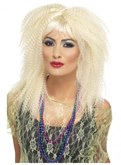 80's trademark blonde crimp long wig, designed to fit most adults.