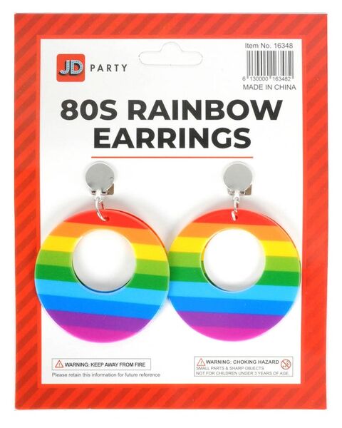 The large circles of rainbow stripe plastic will make an instant 80's glam statement - with a diameter of 4.5cm you can't miss them!