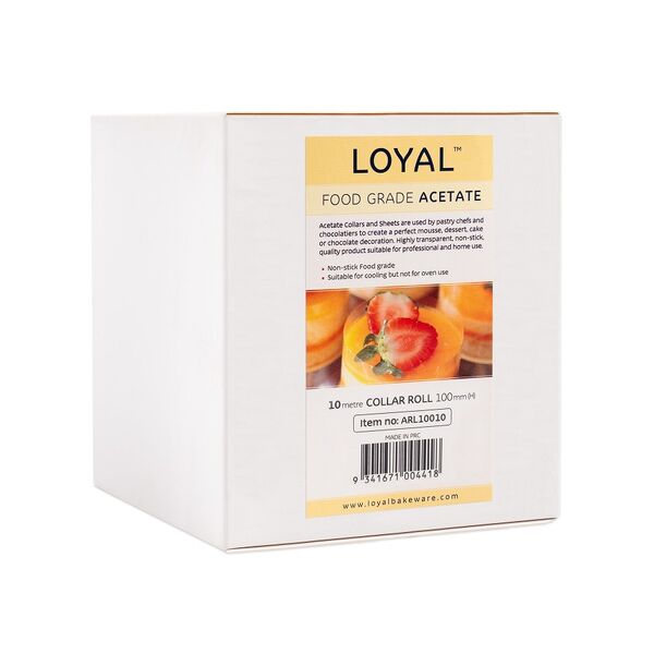With a 100mm height and 10 metre length, it is perfect for standard and taller cakes, allowing you to easily cut the exact length needed for your creations. Whether you're wrapping cakes, lining moulds or creating chocolate decorations, this acetate roll provides flexibility and precision.