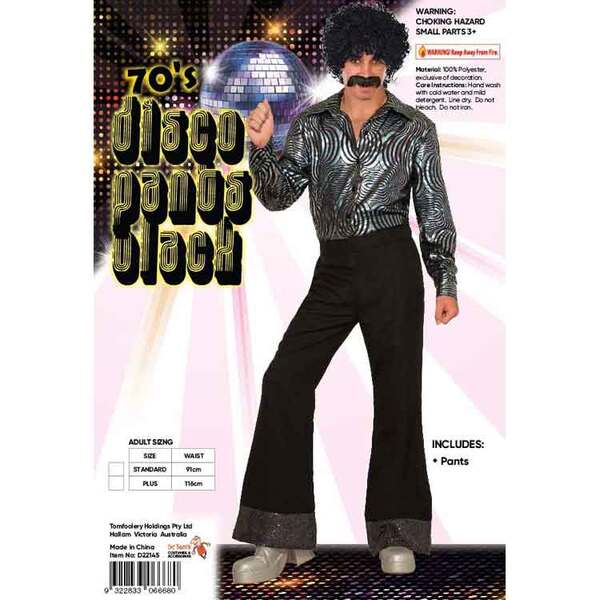 Get ready to boogie the night away in these Adult 70s Black Disco Pants Flares!