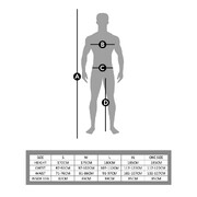 The lederhosen and attached suspenders are made from brown faux suede polyester fabric. The shorts have an elastic waist and ties at the cuffs. The attached suspenders have a decorative panel and silver buttons on the waist and are adjustable by means of two front silver metal buckles on the chest.