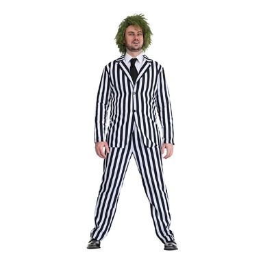 Based on the suit worn by Michael Keaton as Beetlejuice in the movie of the same name, this 3-piece costume is perfect for Halloween, movie themes and more!