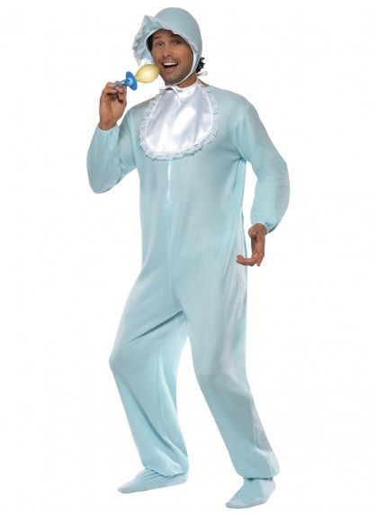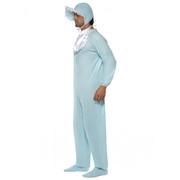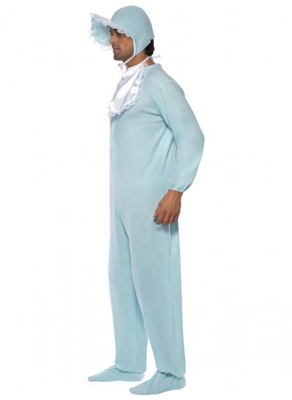 This adult baby one piece suit costume is perfect for heaps of different occasions! This costume includes the fleece bodysuit, bonnet and bib. Costume is designed in a one size fits most style.