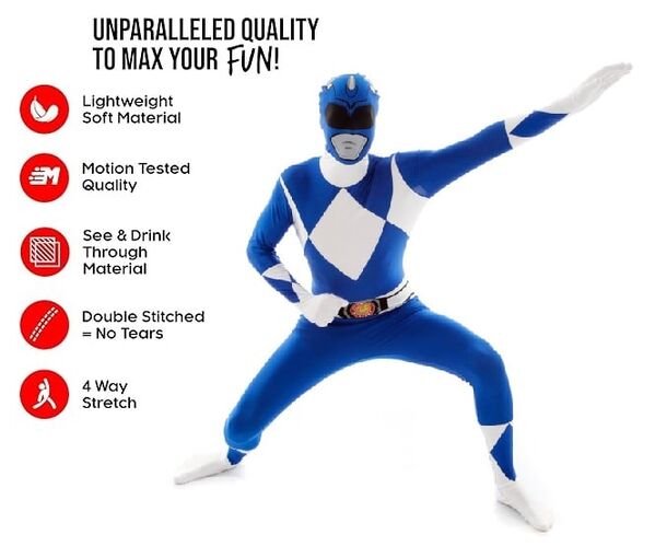 Don’t accept any cheap, unlicensed imitiations, because this is an original Morphsuit with premium levels of comfort and flexibility – you can also even drink in it without removing the mask. The mask portion of the Power Rangers Morphsuit can also be worn down if you prefer.