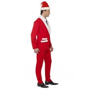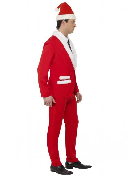 This adult cool Santa suit costume is perfect for any Christmas celebration! This costume includes jacket, trousers, hat, mock shirt and tie. Costume is a size large (42-44.) Easily coordinated with the rest of our Christmas themed costume supplies to ensure that your Christmas is one to remember!