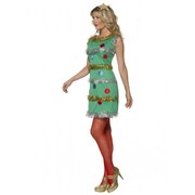 This adult Christmas tree dress costume with tinsel is perfect for any Christmas celebration! This costume includes the dress and headband. Costume is a size medium (designed to fit a women's UK size of approx. 12-14 - see chart for approximate sizing.)