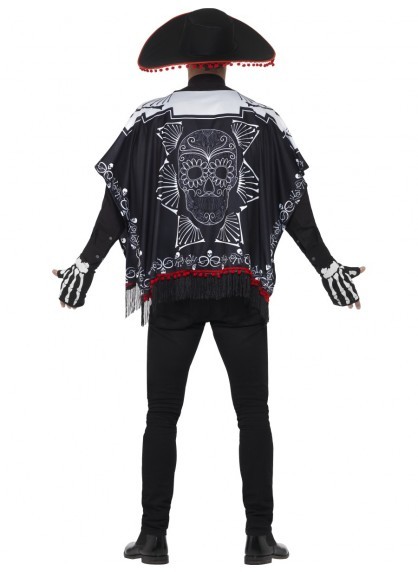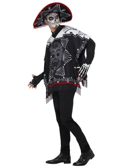 This adult Day of the Dead bandit costume is perfect for heaps of different occasions! This costume includes the poncho, sombrero and gloves. Costume is a one size fits most adults style.