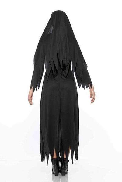 This four-piece set - dress, waist sash, headpiece & necklace - will add a creepy, possessed look to your Halloween celebrations and is perfect for Halloween and Saints & Sinners themes.