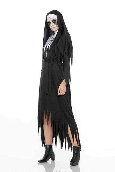 This four-piece set - dress, waist sash, headpiece & necklace - will add a creepy, possessed look to your Halloween celebrations and is perfect for Halloween and Saints & Sinners themes.