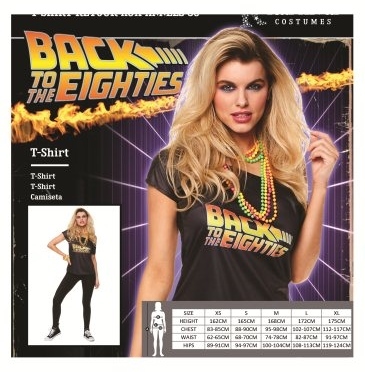 This adult woman Back to the Eighties t-shirt is perfect for heaps of different occasions! Includes the shirt ONLY. Shirt is a size small (approx. size 8-10.)