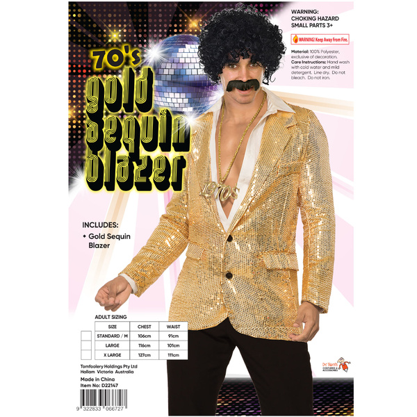 You'll be sure to turn heads on the dancefloor in this dazzling Adult Gold Sequin Disco Blazer Jacket!