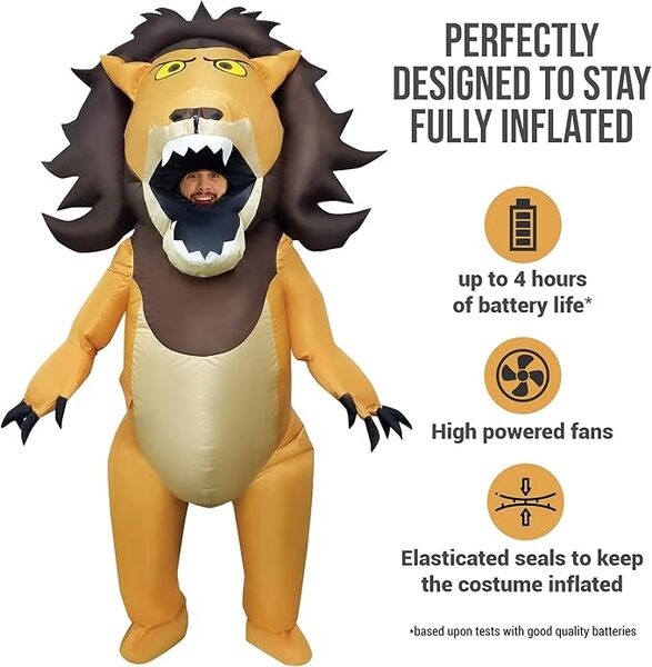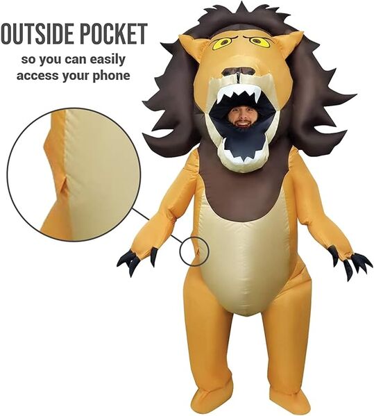 Whether it's an animal theme party or you just want to be king of the jungle for the day, this inflatable lion outfit will see you stand head and shoulders above the rest of the pride - at 215cm/7ft tall you are sure to be the centre of attention in this roar-some costume.