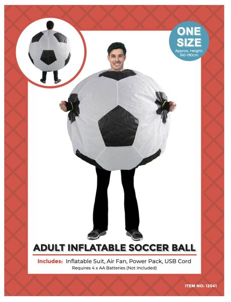 Fun and easy to use - simply step into the costume via the rear zipper opening - close the zip and make sure the neck, wrist and leg fastenings are secure to stop the air escaping too quickly - turn on the battery pack and in a few seconds the costume will inflate and you'll be game ready!