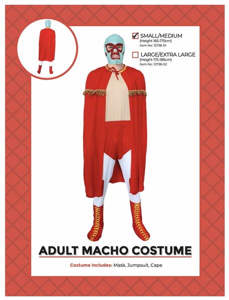 Based on the colourful costume worn by Jack Black as Nacho in the 2006 film Nacho Libre, this easy to wear costume is perfect for Wrestling, Sports & Movie themes, carnivals, costume events, Halloween & more!