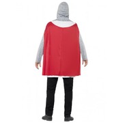 This adult knight costume is perfect for any costume party! This costume includes top with attached cape, belt and hood. Costume is a size large (42-44" / 107-112cm.) Easily coordinated with the rest of our costume supplies!