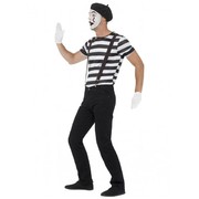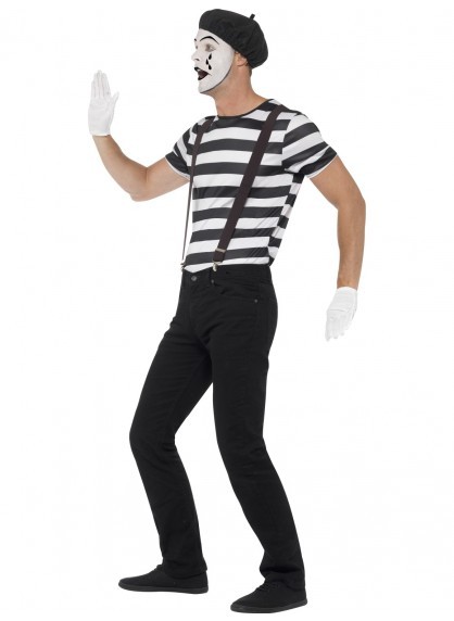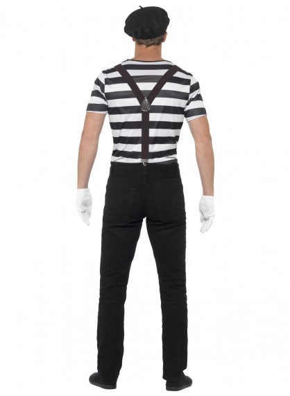 This adult black & white mime costume is perfect for heaps of different occasions! This costume includes the top, beret, gloves, braces & make-up. Costume is a size large (designed to fit a men's chest size of approx. 107-112cm - see chart for approximate sizing.)