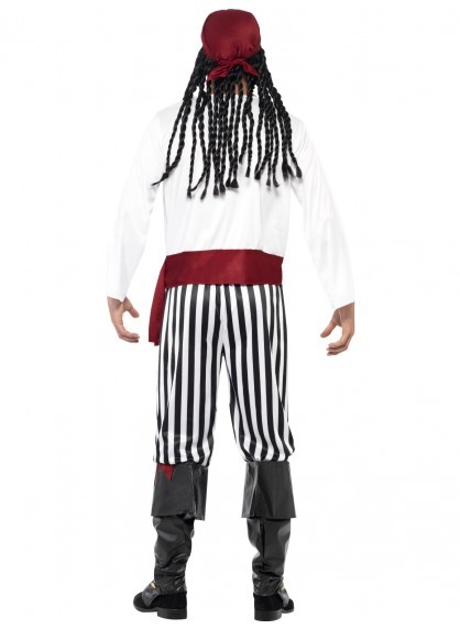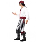 This adult male pirate man costume is perfect for heaps of different occasions! This costume includes shirt, trousers, headpiece and belt. Costume is a size large (chest size 42-44.)