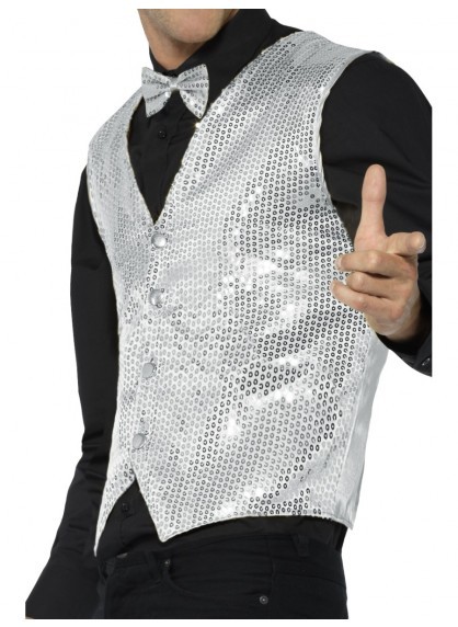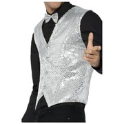 This adult male silver sequin waistcoat vest is perfect for heaps of different occasions! Includes the vest ONLY. Vest is a size medium (38-40.)