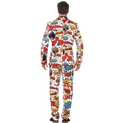 This Comic Strip Suit (includes: Jacket, Pants and Tie) is sure to get you noticed at your next costume party or even Formal Event.