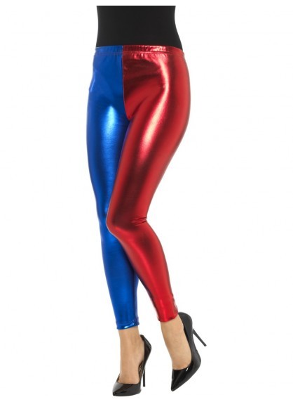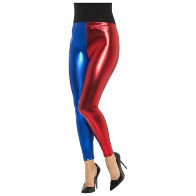 Adult metallic red & blue harlequin cosplay leggings, designed in a large size (approx. a women's UK size 16-18.)
