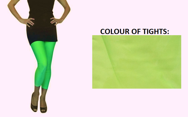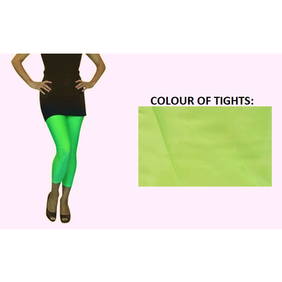 Neon green lycra footless tights, perfect for heaps of different costumes! Designed to fit most adults.
