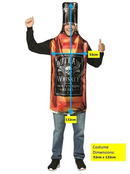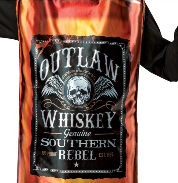 Though the design of the label on this costume might resemble your favorite whiskey, the impression you make with this fun Outlaw Whiskey Bottle costume will be all your own.