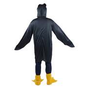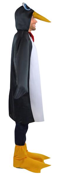 The costume consists of a long hooded black & white tunic with attached flippers with hand holes, 3D beak and eyes and a red bow tie.