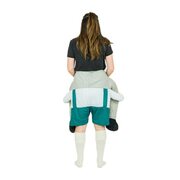 Just pull it on like a pair of trousers and it looks like the lederhosen guy is carrying you!