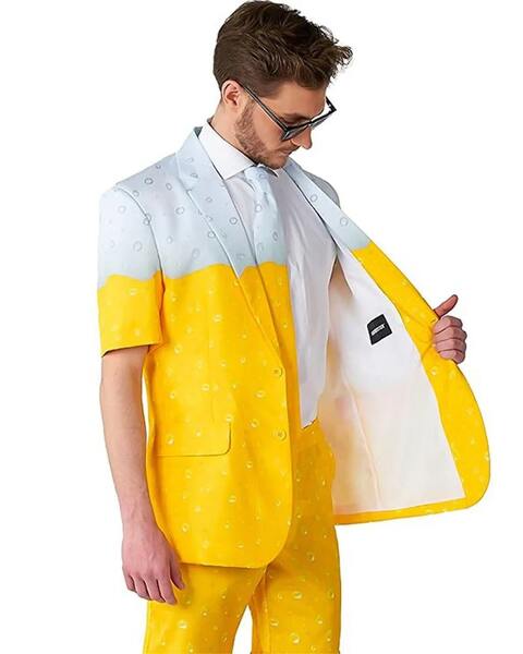 You will look like a schooner of the amber ale with a frothy white head and bubbly gold body in the matching jacket, shorts and tie.