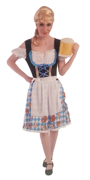 NB: Costume does not include shoes, stockings, wig or beer mug prop. Colours / designs may vary slightly from image. 100% polyester.