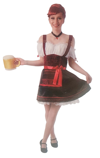 NB: Costume does not include wig, shoes or beer mug prop. Colours / designs may vary slightly from image - see images after main image for photos of the dress out of the packaging. 100% polyester. Choker has a love heart pendant on it.