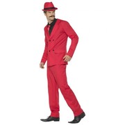 This adult red gangster zoot suit costume is perfect for heaps of different occasions! This costume includes jacket, trousers, hat, mock shirt and tie. Costume is a size large (chest size 42-44.)
