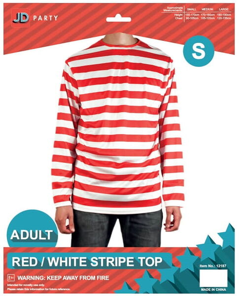 This unisex shirt is made from red and white striped polyester fabric and has long sleeves - perfect for blending in with the crowd.