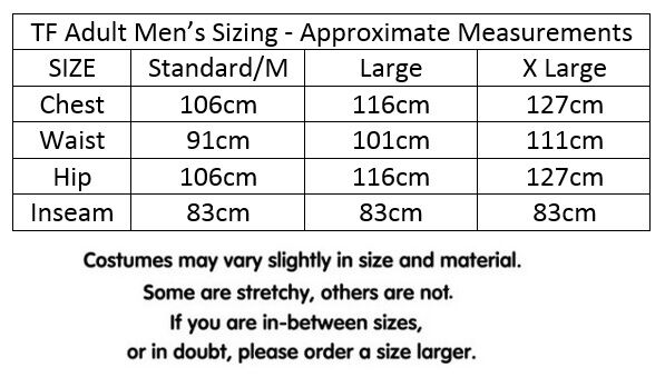 This costume is easily coordinated with our other costume items and accessories and is available to purchase both in-store at our Newcastle shop and through our on-line store for pick-up or delivery.
