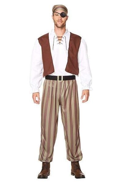 This costume consists of shirt with vest, trousers, belt, bandana & eyepatch: