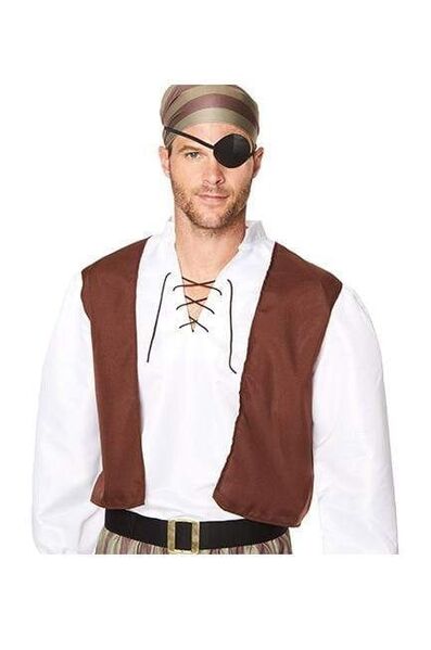 This costume consists of shirt with vest, trousers, belt, bandana & eyepatch: