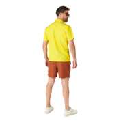 The button-up shirt is yellow in colour with printed SpongeBob face and neck tie details on the front.