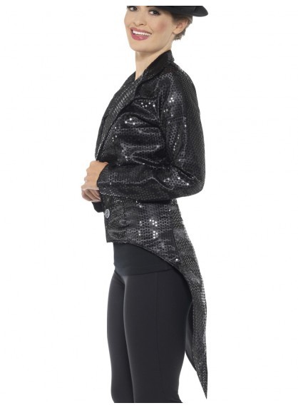 This adult woman black sequin tailcoat jacket is perfect for heaps of different occasions! Includes the jacket ONLY. Jacket is a size large (approx. size 16-18.)