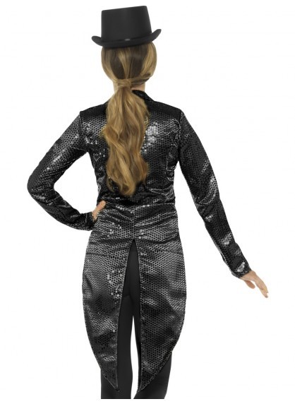 This adult woman black sequin tailcoat jacket is perfect for heaps of different occasions! Includes the jacket ONLY. Jacket is a size medium (approx. size 12-14.)