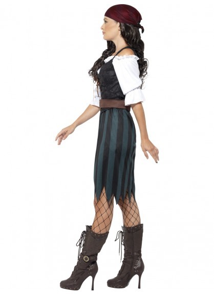 This adult woman pirate deckhand costume is perfect for heaps of different occasions! This costume includes the shirt, mock waistcoat, skirt, belt and bandana. Costume is a size small (designed to fit a women's UK size of approx. 8-10 - see chart for approximate sizing.)