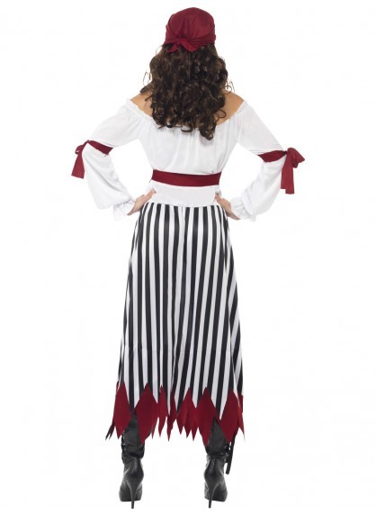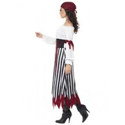 This adult woman pirate lady costume is perfect for heaps of different occasions! This costume includes the dress, headpiece, belt and armbands. Costume is a size small (designed to fit a women's UK size of approx. 8-10 - see chart for approximate sizing.)
