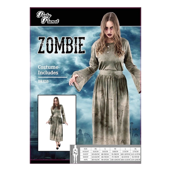 You'll blend right in with the undead horde in this grungy dress made from mottled grey stretch fabric.