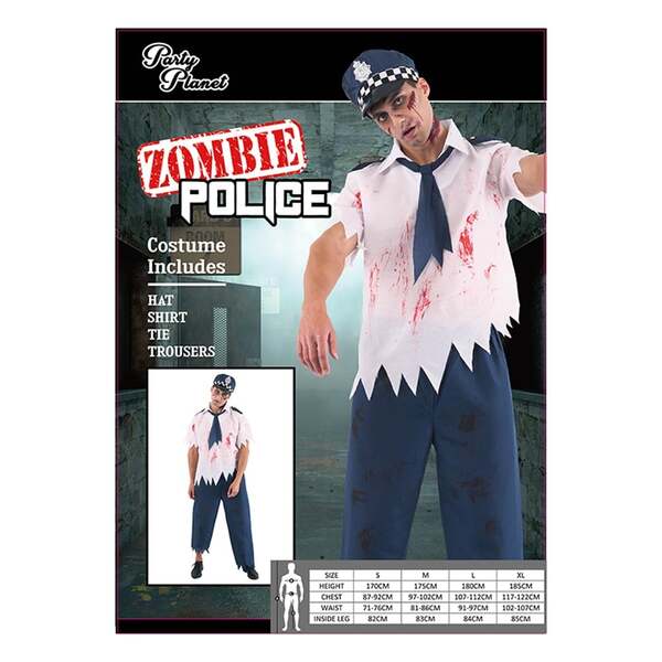 Even the walking dead need someone to keep them in line - this shirt, trousers, tie & hat combo is perfect for Halloween, Zombie and Law & Order themes.