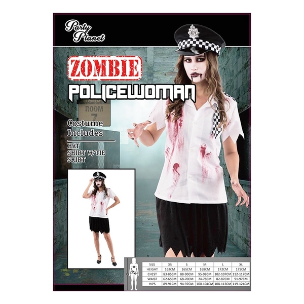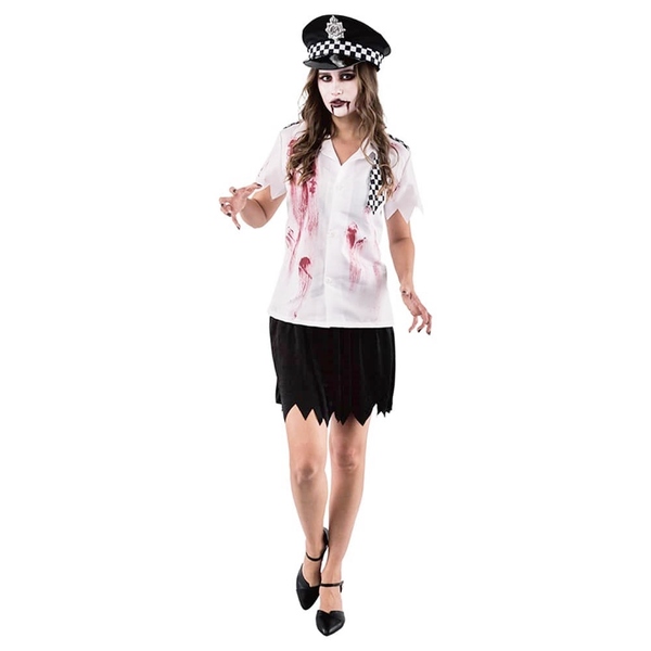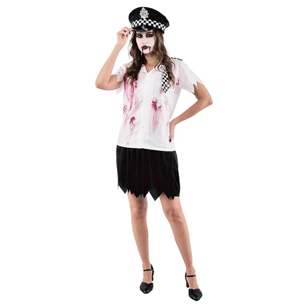 Even the walking dead need someone to keep them in line - this shirt, skirt & hat combo is perfect for Halloween, Zombie and Law & Order themes.