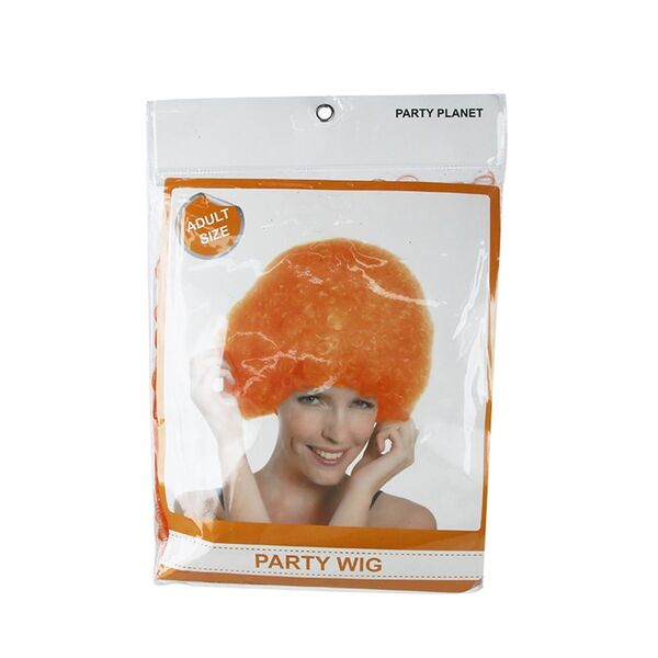 The curly orange synthetic hair can be styled to your liking right up to a full round afro style - perfect for clowning around or dancing the night away.